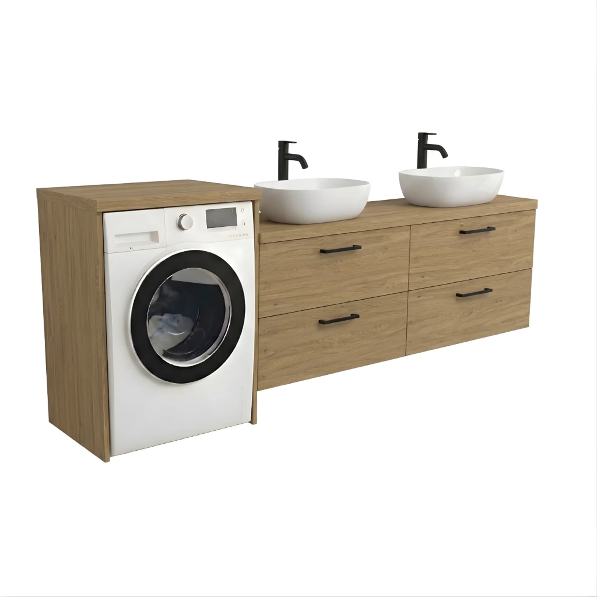 Szafka łazienkowa na pralkę i umywalkę wisząca nadblatowa z blatem szuflady Dąb Kamienny Lucy Paula Podwójna