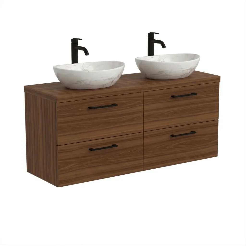 Szafka łazienkowa na pralkę i umywalkę wisząca nadblatowa z blatem szuflady Orzech Lucy Paula Podwójna