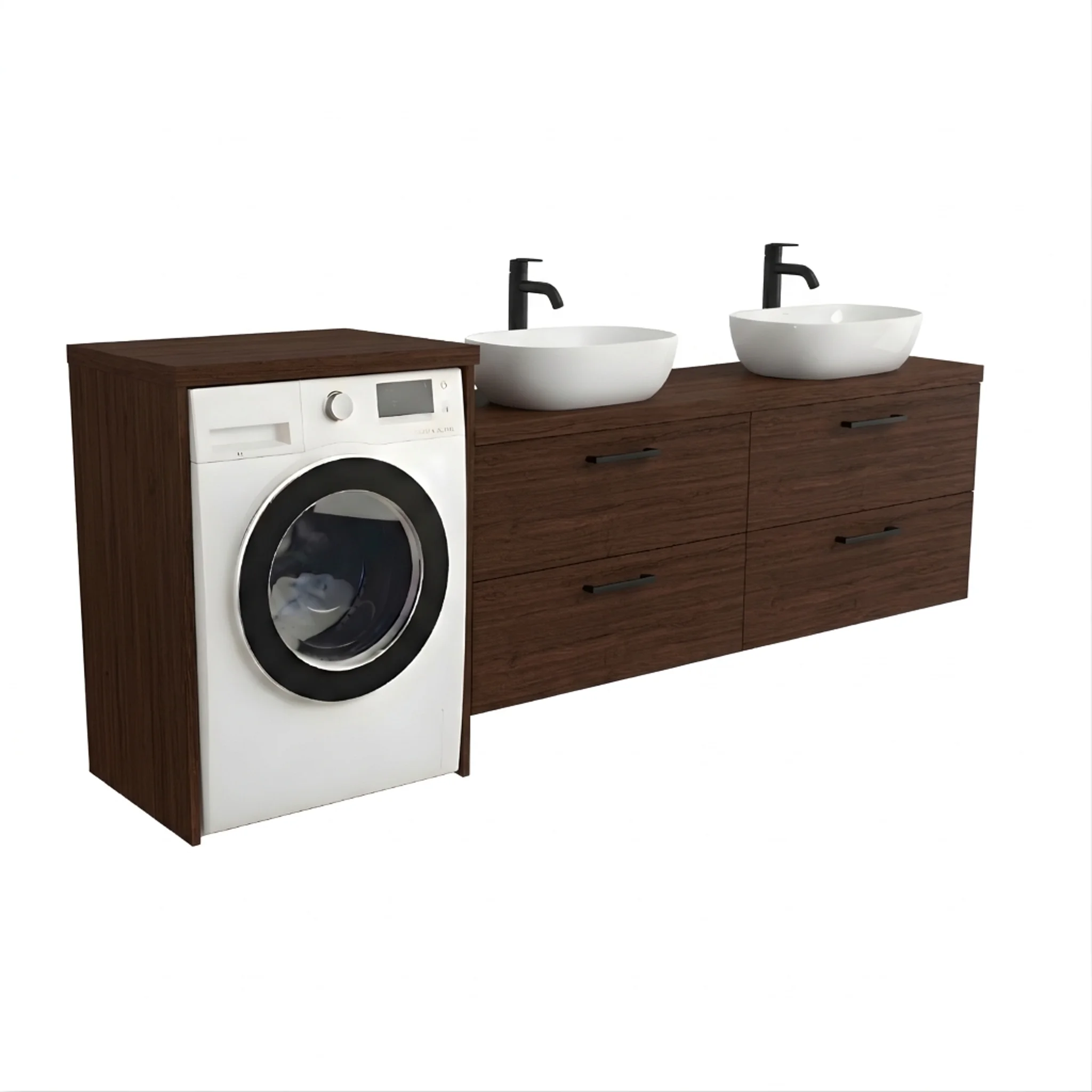 Szafka łazienkowa na pralkę i umywalkę wisząca nadblatowa z blatem szuflady Wenge Lucy Paula Podwójna
