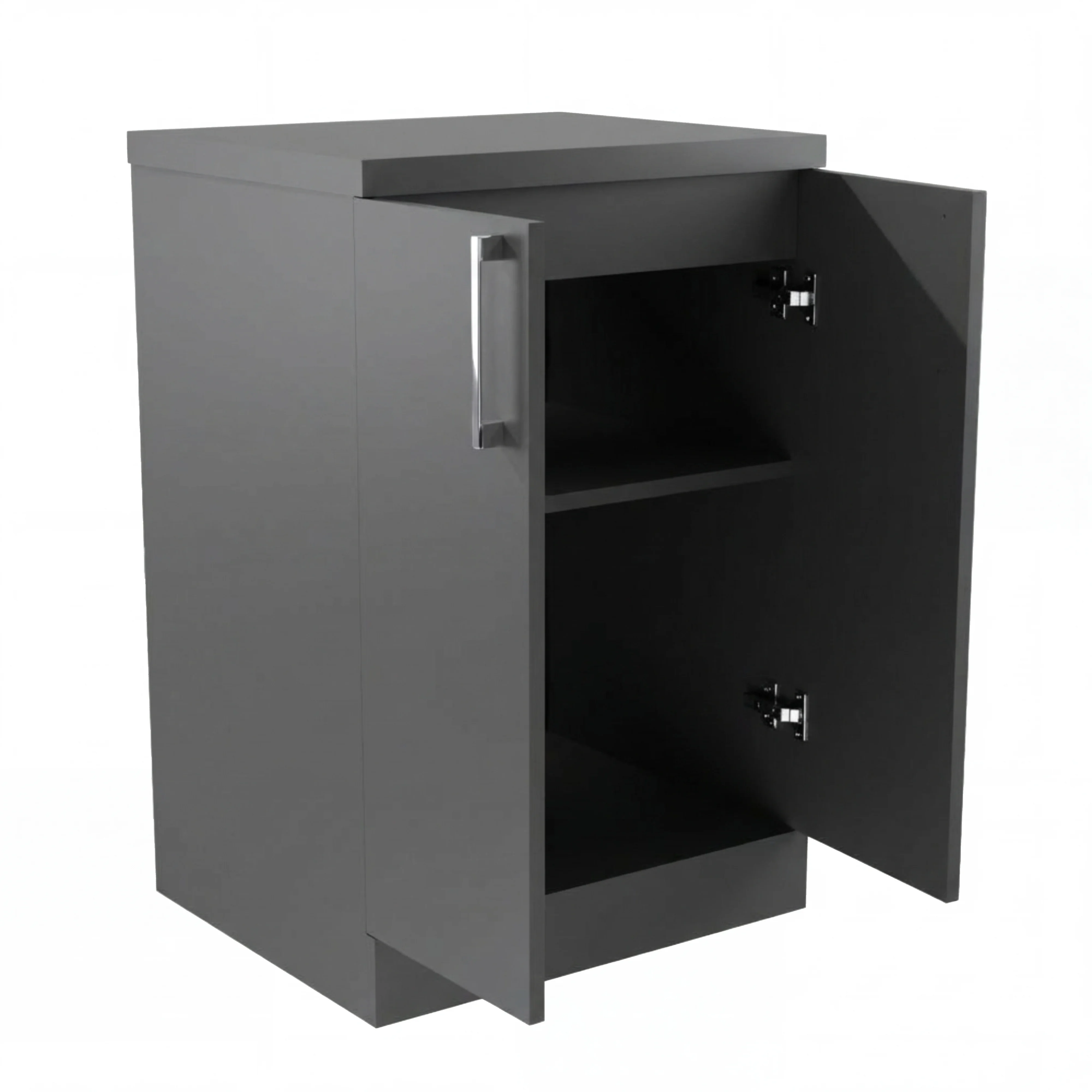 Szafka stojąca Aria to doskonały wybór dla osób szukających funkcjonalnej i stylowej komnody do łazienki. Produkt łączy nowoczesny design w kolorze Grafit / Antracyt z praktycznością oraz solidną konstrukcją opartą na grubym blacie i aluminiowych akcesoriach. Szafka łazienkowa Aria stanowi inwestycję w jakość i elegancję Twojej łazienki, oferując niezawodną przechowywanie przez wiele lat.