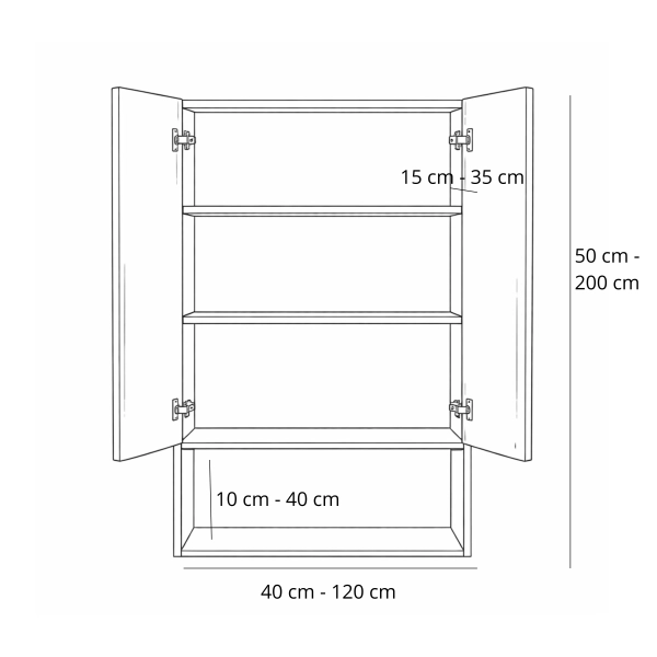 - Wysokość całkowita szafki: 50 cm - 160 cm