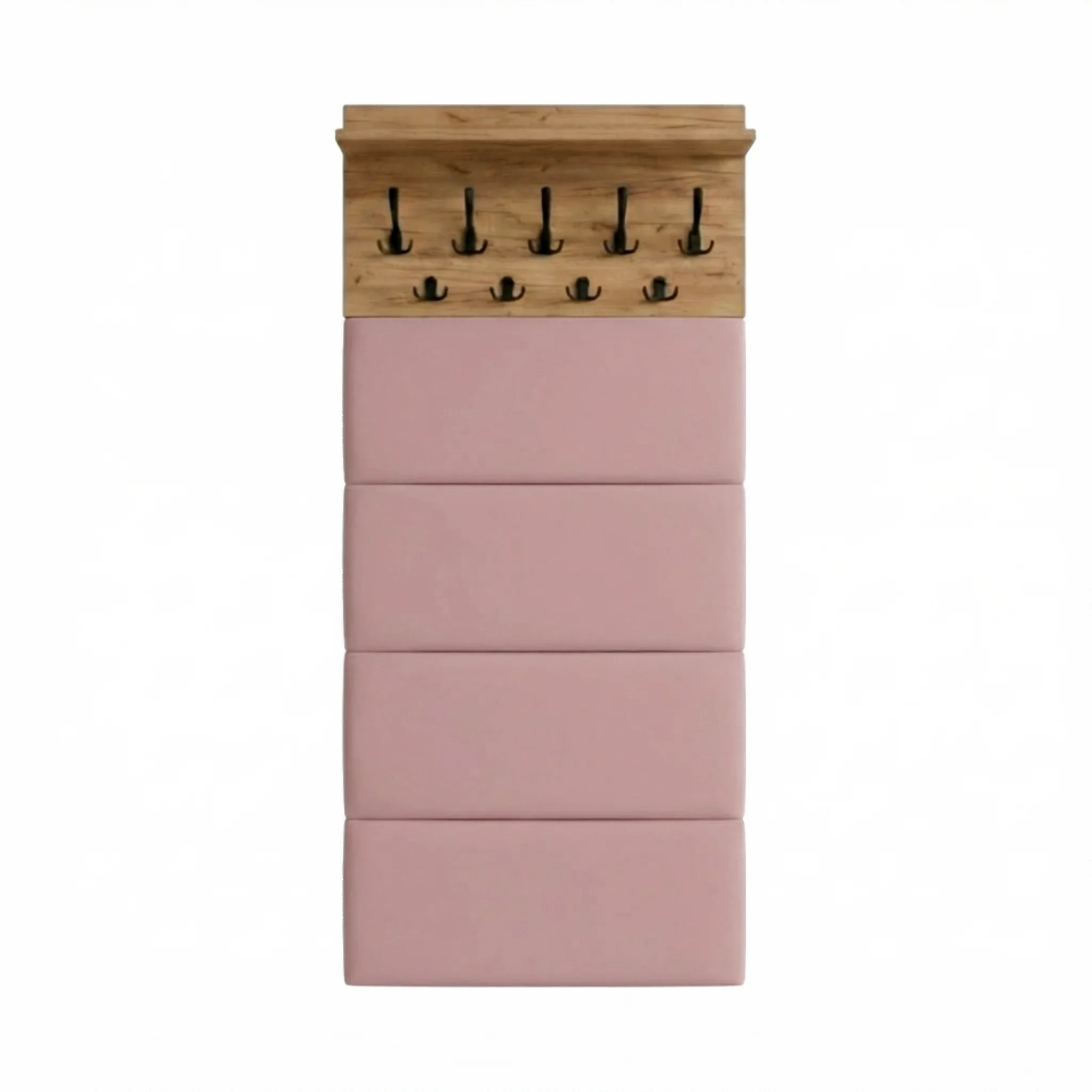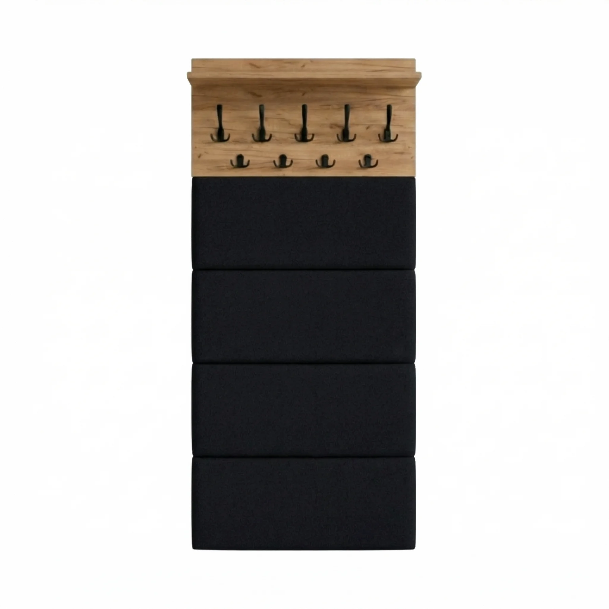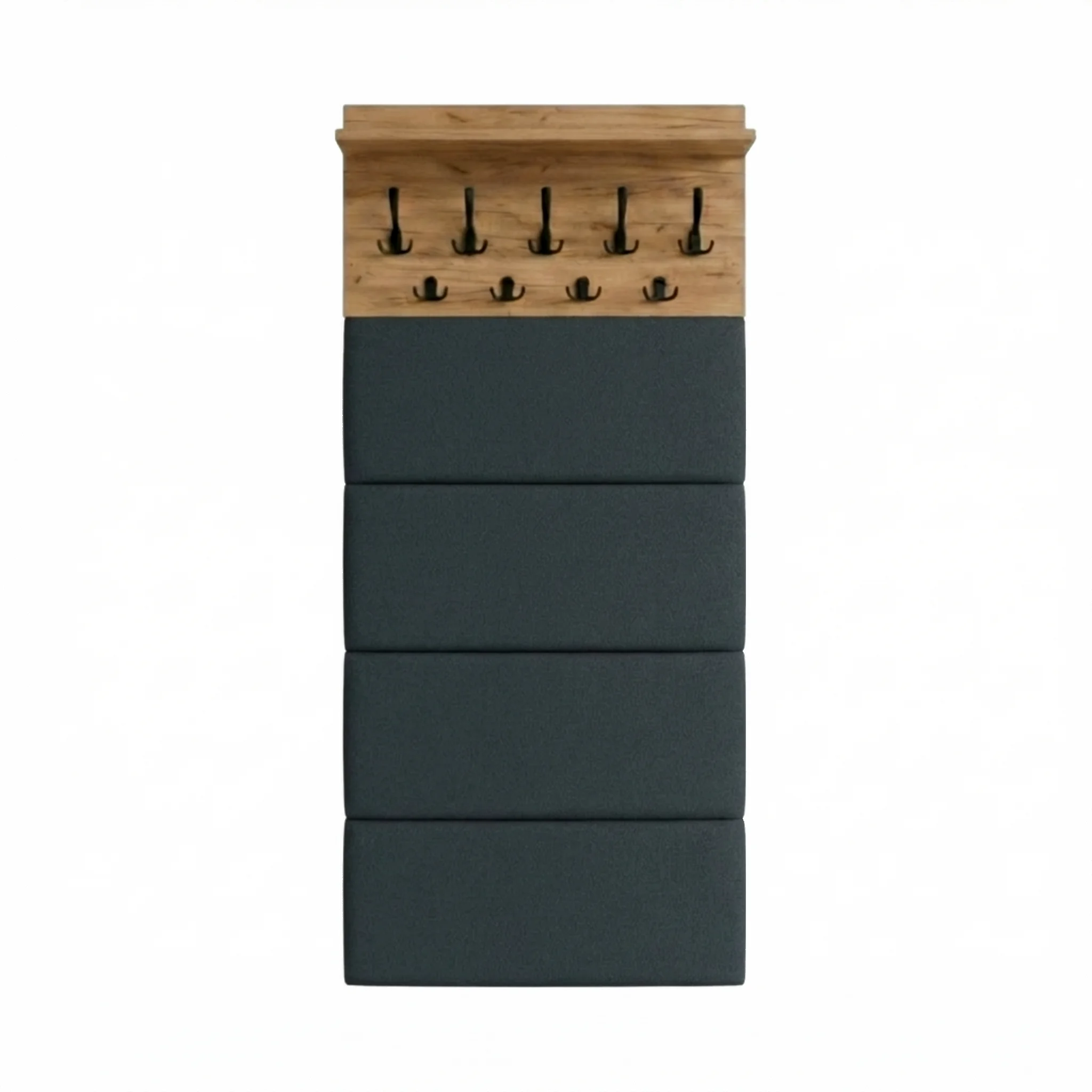 ✅ Panele tapicerowane – Eleganckie panele tapicerowane dodają produktowi nowoczesny wygląd i wygodę. Tapicerowanie nie tylko upiększa wieszak, ale także chroni ścianę przed zabrudzeniami i uszkodzeniami.
