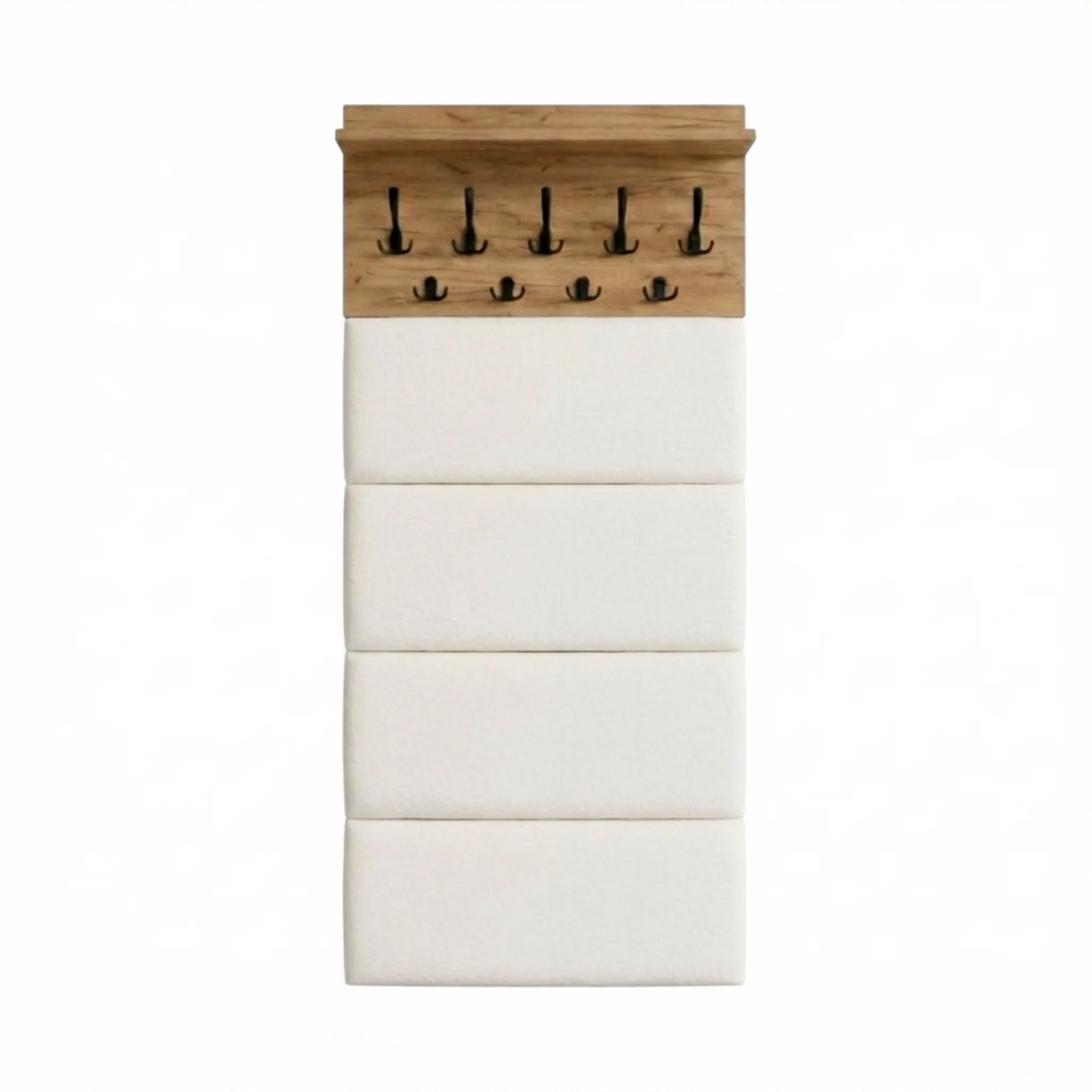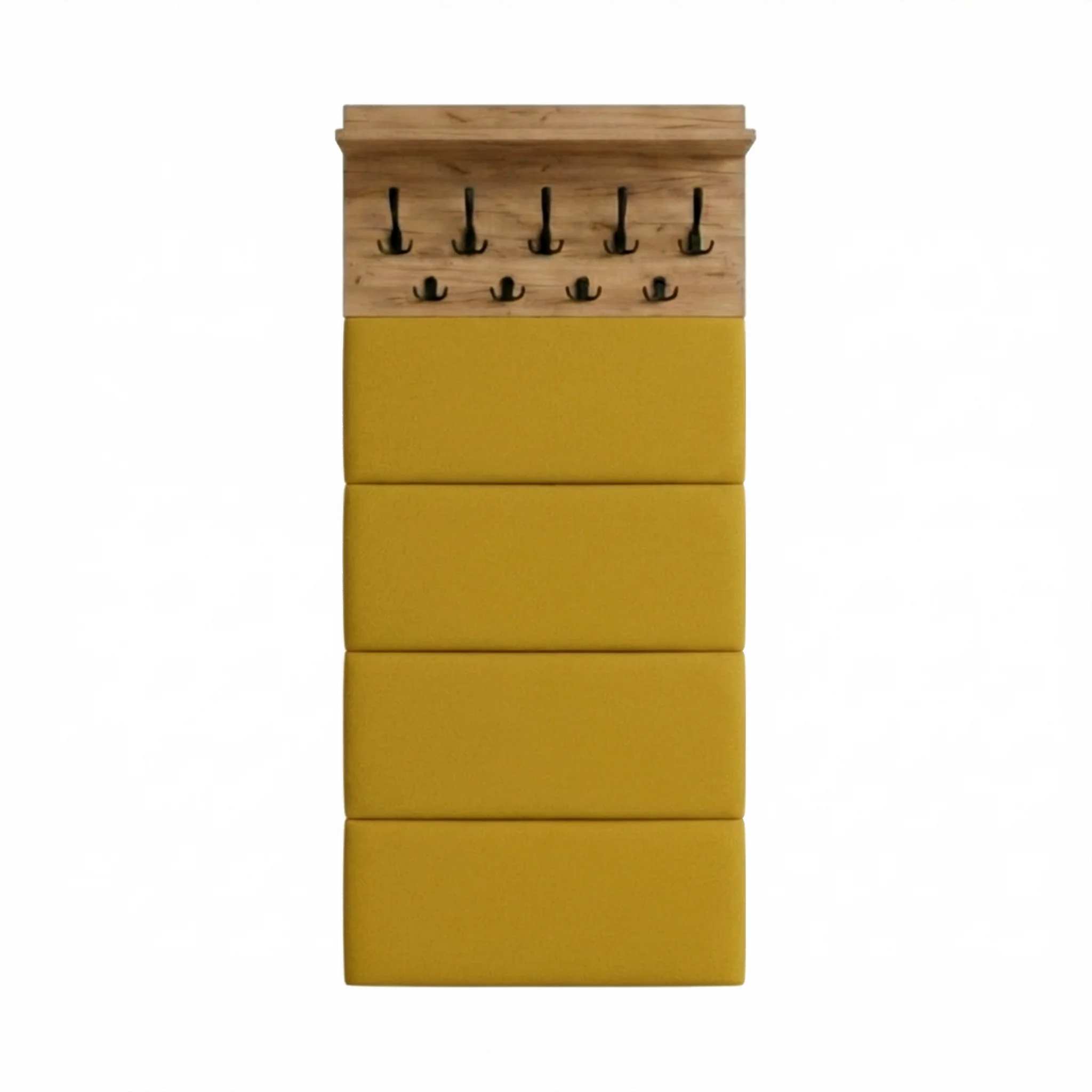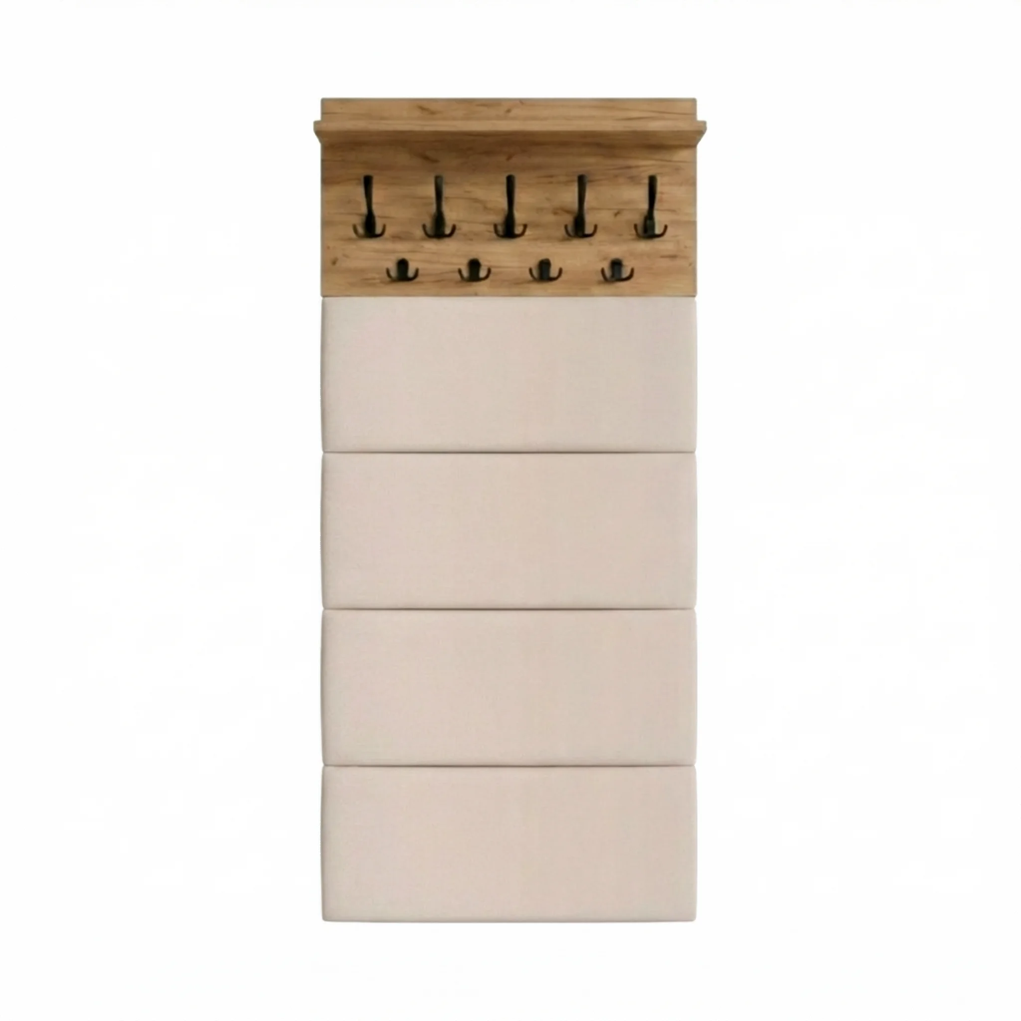 ✅ Panele tapicerowane – Eleganckie panele tapicerowane dodają produktowi nowoczesny wygląd i wygodę. Tapicerowanie nie tylko upiększa wieszak, ale także chroni ścianę przed zabrudzeniami i uszkodzeniami.